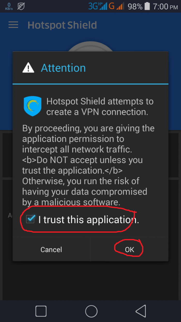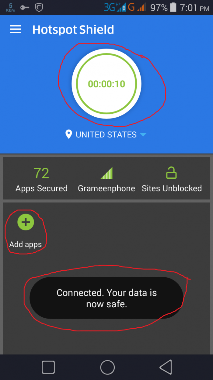 আরেকটি কথা অনেক সময় ভিপিএন অ্যাপ টি কানেক্ট নিতে চায় না, তাই ঘাবড়ানোর কোন দরকার নেই... শুধু কয়েকবার ট্রাই করবেন কানেক্ট করার ইনশাল্লাহ কানেক্ট হয়ে যাবে। আর মাথায় রাখবেন যখনি Hotspot Shield VPN অ্যাপটি ওপেন করবেন তখন যেন আপনার মোবাইল ফোন এর ডাটা কনেকশন অফ থাকে, অ্যাপ টি ওপেন হয়ে যাওয়ার পর তারপর ডাটা কানেকশন অন করবেন, তা না হলে এটা ফ্রী ভার্সনে চলে আসবে এবং অনেক সমস্যার সম্মুখীন হতে পারেন,