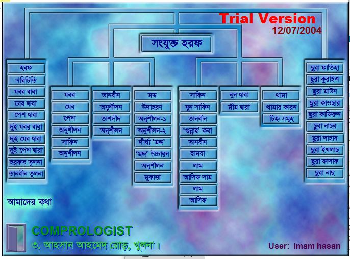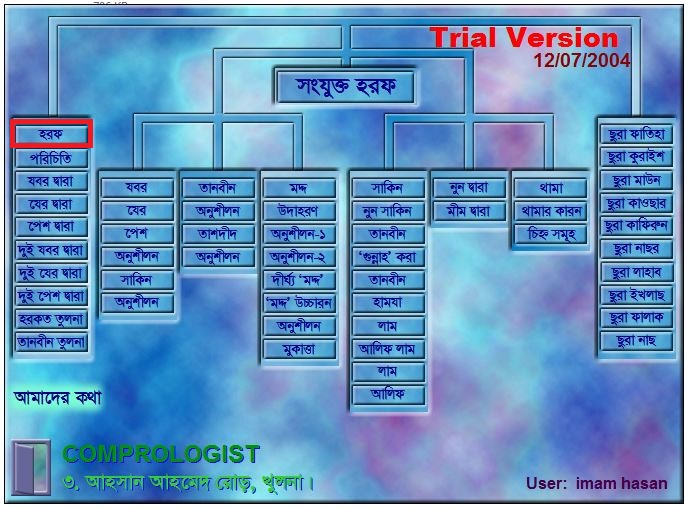 ৭. তারপর সূচিপত্রে ক্লিক করতে আবার আপনি মেনুতে চলে আসবেন। এখানে আপনি কুরআন সিক্ষার যা যা দরকার সব পাবেন, এবং প্রতিটা অপশনে ক্লিক করে ভাল ভাবে সব সিখে নিন।