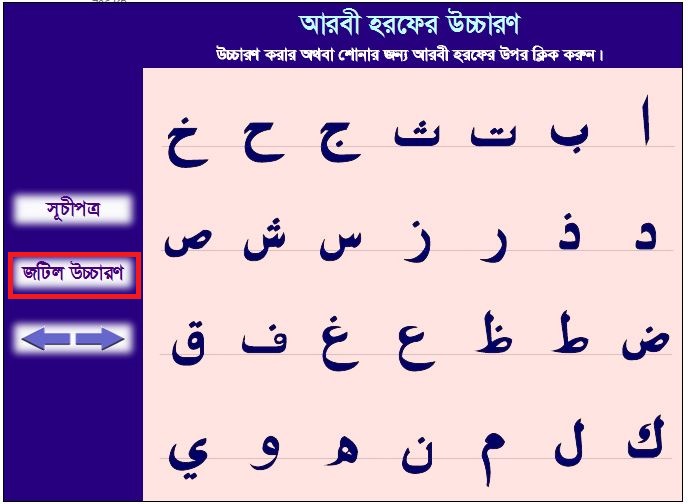 ৪. হরফে ক্লিক করার পর এরকম দেখতে পারবেন, এবার আপনি যে হরফে ক্লিক করবেন, সেই হরফ আওয়াজ করে উচ্চারণ হবে।