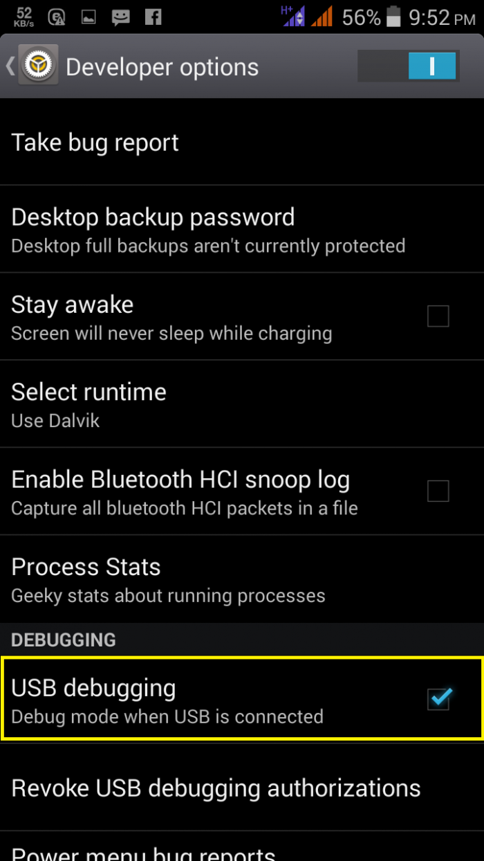 ২. এবার USB Debugging এ টিক দিন ও বেরিয়ে আসুন। নিচের চিত্র দেখুন