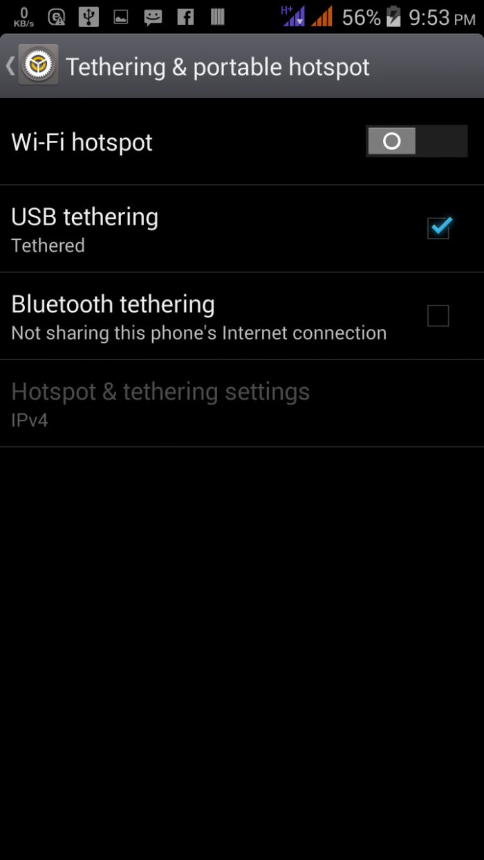৪. এবার Tethreing & Portebale Hotspot হবে USB Tethreing এ টিক দিন ও কিছু সময় অপেক্ষা করুন আসাকরি আপনার পিসি নেটে কানেক্ট হয়ে যাবে। আপনার ফোন পিসিতে কানেক্ট না থাকলে এই অপশনটা ব্লক থাকবে।