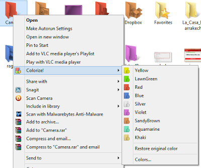 যেই ফোল্ডার টির রং পাল্টাবেন সেট সিলেক্ট করে মাউসের রাইট বাটন চাপ দিন,দেখুন Colorize নামে একটি অপশন পাবেন,তাতে চাপ দিলেই বিভিন্ন কালার পাবেন,যেটা ইচ্ছা সিলেক্ট করলেই কাজ শেষ।