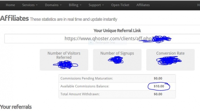 আপনি এর মাধ্যমে অ্যাফিলিয়েট করতে পারবেন। অ্যাফিলিয়েট এ ক্লিক করার পর 10ডলার বোনাস পাবেন যা দিয়ে ডোমেইন কিনাসহ টাকা তুলতে পারবেন যেকোন পেমেন্ট মেথড থেকে। এবং আপনাকে একটা রেফারেল আইডি দিবে যা থেকে কেউ সাইনআপ করে ডোমেইন কিনলে আপনি ও বোনাস পাবেন।