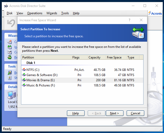 এবার আপনি যে ড্রাইভের স্পেস বারাতে চান সেই ড্রাইভ টি সিলেক্ট করে নেক্সট বাটনে ক্লিক করুন।