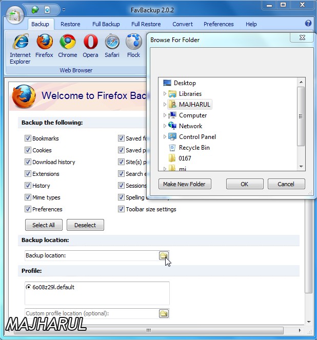 এবার Backup location-এ গিয়ে দেখিয়ে দিন সেটিংসগুলো কোথায় সংরক্ষণ হবে। এরপর Next/finish-এ ক্লিক করলেই নির্ধারিত স্হানে সংরক্ষণ হয়ে থাকাবে।