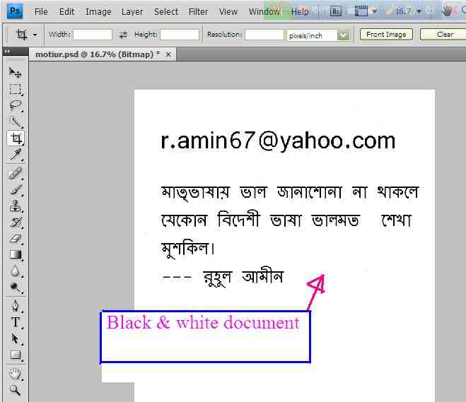 আপনার একটা ডকুমেন্ট স্ক্যান করা দরকার এবং ডকুমেন্টটি সাদা কালো আর স্ক্যানারটিও সাদা কালো। কিন্তু আপনাকে কাজ এটির মাধ্যমেই সারতে হবে। এই অবস্থায় ফটোশপে আপনি jpeg ফরমেট করতে পারছেন না। তাহলে উপায় কি?? এই ক্ষেত্রে আমি যা করি তাই ব্যক্ত করছি।
