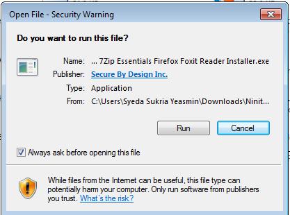 ফাইলটি আপনার ডাউনলোড লোকেশনে উপরের মত দেখাবে । ফাইলটি ডাউনলোড হয়ে গেলে আপনাকে এটি রান করাতে হবে । এটি রান করাতে গেলে আপনার কাছে অনুমতি চায়তে পারে, আপনাকে অবশ্যই run বোতামে ক্লিক করতে হবে ।
