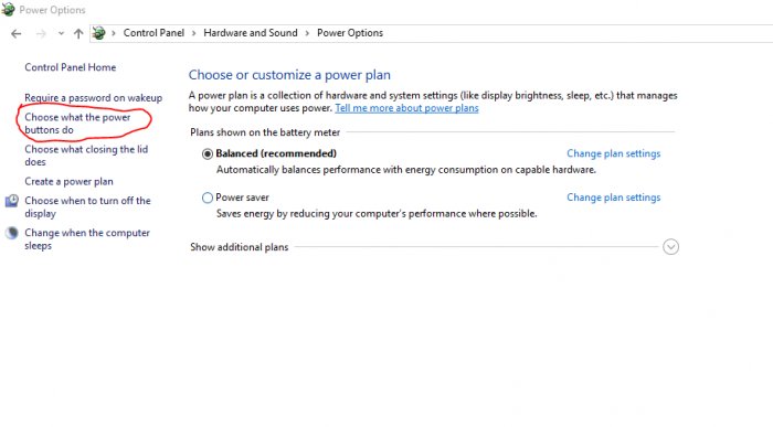 প্রথমে Control Panel > Hardware and Sound > Power Options এ যান। বামপাশে Choose what the power buttons do ক্লিক করুন।