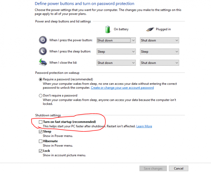 তারপর নিচে Turn on fast startup (recommended) থেকে টিক চিহ্ন তুলে দিন(Uncheck করুন)।