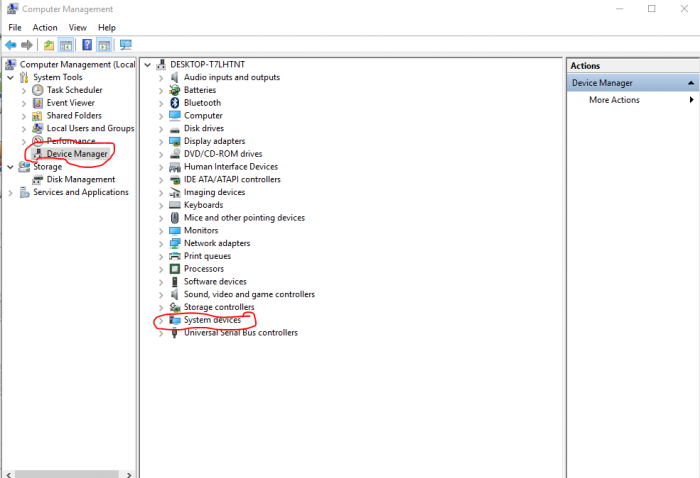 এবার This PC'র উপর Right Click করে Manage এ ক্লিক করুন। সেখানে বামপাশের Device Manager এ ক্লিক করুন এবং ডানপাশের System devices এ ক্লিক করুন।