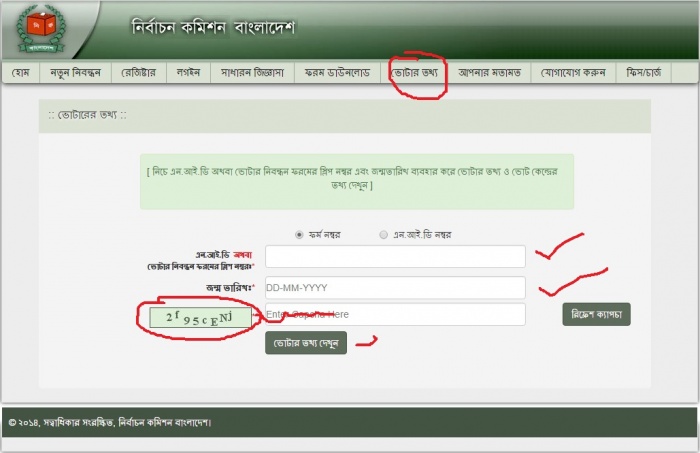 [ নিচে এন.আই.ডি অথবা ভোটার নিবন্ধন ফরমের স্লিপ নম্বর এবং জন্মতারিখ ব্যবহার করে ভোটার তথ্য ও ভোট কেন্দ্রের তথ্য দেখুন ]