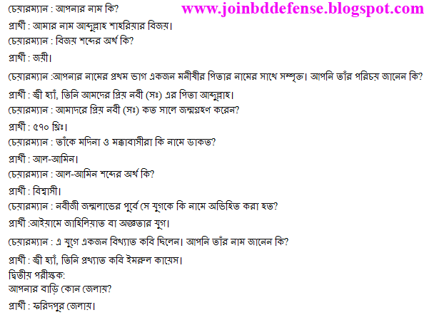 পরীক্ষার্থী বোর্ডের চেয়ারম্যান সালামের জবাব দিয়ে তাকে তার জন্য নির্ধারিত আসনে বসার অনুমতি দিবেন। তখন প্রার্থী তাঁর মূল সার্টিফিকেটগুলো চেয়ারম্যানের নিকট প্রদান করবেন। তারপর চেয়ারম্যান মহোদয় তাঁকে প্রশ্ন করতে শুরু করবেন।