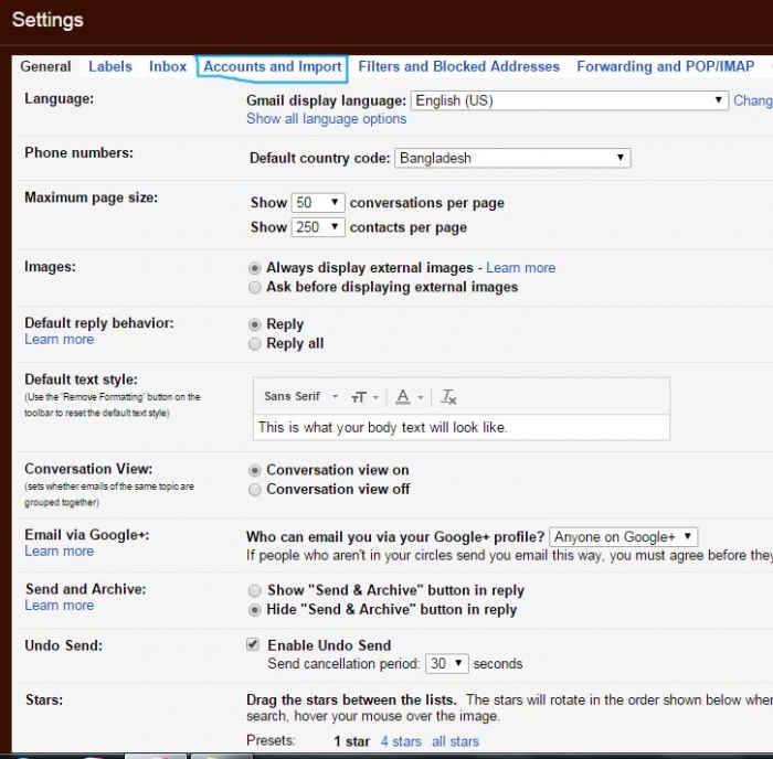 এবার Accounts and import এ ক্লিক করুন, নিচের মত দেখবেন।
