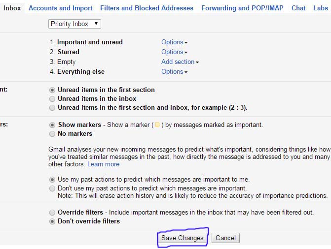 এখানে Default অপশন থেকে Priority Inbox এ ক্লিক করুন। তাহলে নিচের মত দেখবেন।