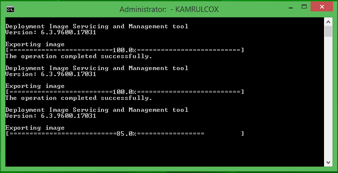 আমার Install.wim ফাইলটিতে চারটি Image আছে এবং আমি Batch File টিতে চারটি Image Add করেছি। Batch File এর Image সংখ্যা আর Install.wim File এর Image সংখ্যা কম বেশি হলে Command টি কাজ করবে না। প্রতিটি Image এর সাইজ সাধারণত কয়েক GB হয়ে থাকে। সাইজ খুব বড় হওয়ায় প্রতিটি Image Compress হতে একটু সময় লাগতে পারে। ক্ষেত্রে বিশেষে ঘন্টা খানেক লাগতে পারে। সব কটি Image Compress হওয়া পর্যন্ত অপেক্ষা করতে হবে এবং কোনভাবে Interruption হলে শুরু থেকে করতে হবে। তবে কাজ চলাবস্থায় অন্যান্য কাজ করা যাবে। কমান্ড সমাপ্ত হলে একই জায়গায় Install.esd তৈরি হয়ে যাবে। Run as Administrator হিসেবে Batch File টি Run করে অপেক্ষা করুন শেষ না হওয়া পর্যন্ত।