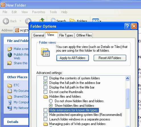 পদ্ধতিঃ প্রথমেই file extension সো করানোর জন্য Hide extensions for known file type এর টিক তুলে দিন।