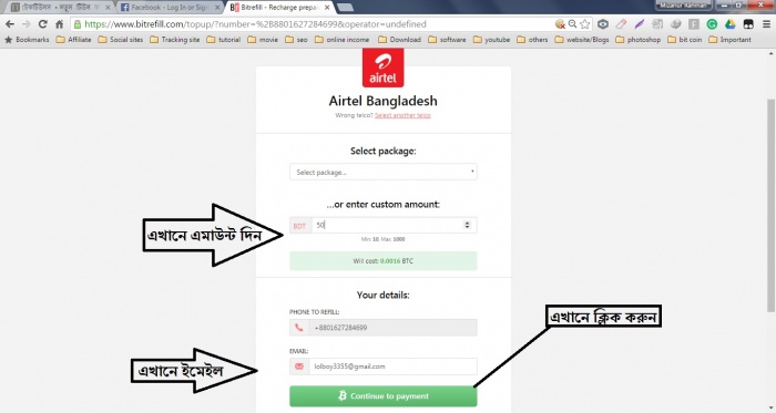 তারপর এমাউন্ট এবং ইমেইল দিয়ে Continue to payment এ ক্লিক করুন
