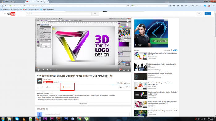 - এবার ইউটিউবের যেকোন ভিডিওতে গেলেই নিচের ছবির মত ভিডিওর নিচে Download বাটন পাবেন।