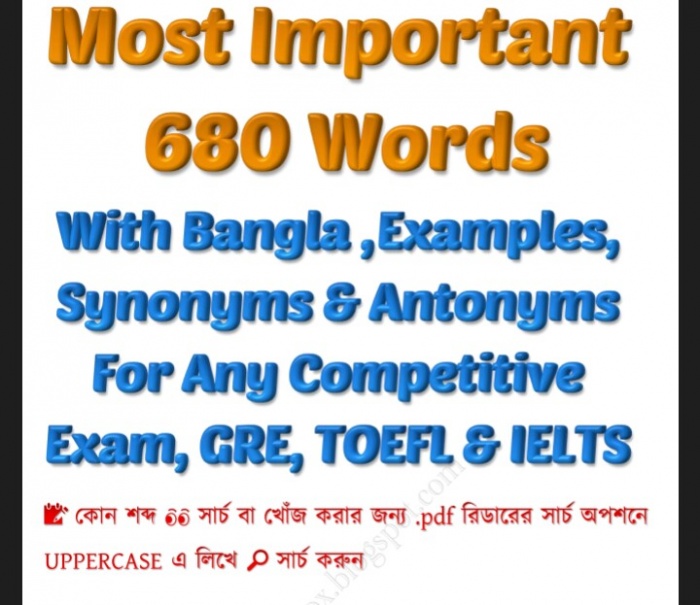 বইয়ের নামঃ গুরুত্বপূর্ণ ৬৮০ টি ইংরেজি শব্দ সাথে বাংলা ও ইংরেজি সমার্থক ও বিপরীত অর্থ