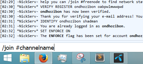 ১)এখন আপনি আপনার নাম দিয়ে ঢুকবার পর এই কমান্ড টি দেন- /join #channelname এখানে channelname এর জাইগায় আপনার চ্যানেল এর নাম দেন যেইটিকে আপনি রেজিস্টার করতে চান। # চিহ্ন টি মেতাবেন নাহ।