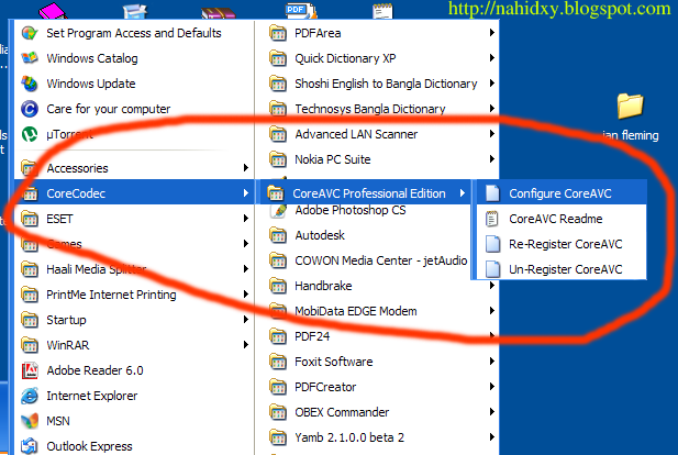 Start menu তে programmes মেনু থেকে CoreCodec >CoreAVC professional edition>Configure coreAVC এ যান।