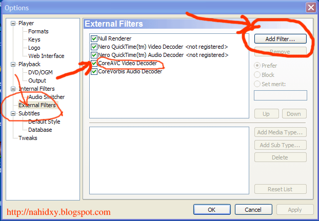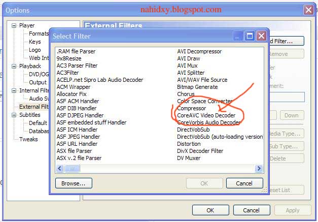 তারপর খুজে বের করুন coreavc video decoder .এটিকে add করুন।অন্য কোন কিছু add করার দরকার নাই।আমার এখানে যতগুলো external filter লিস্টেড আছে আপনার নাও থাকতে পারে।ঘাবড়াবেন না।