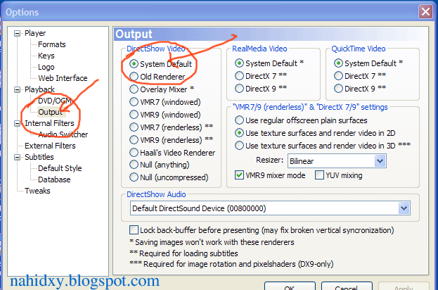এরপর output অপশন এ যান।দেখুন direct show video কে system default দেওয়া আছে কিনা।না দেওয়া থাকলে select করে দিন।
