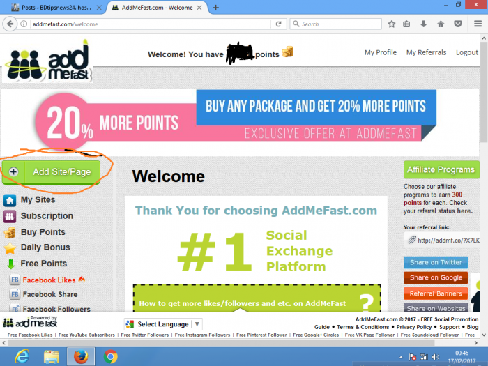 আজকে যে সাইট এর সাথে আপনাদের কে পরিচয় করিয়ে দিব তার সাহায্যে আপনি পাবেন ফ্রি ফেসবুক লাইক, গুগল+, টুইটার follower, ইউটিউব views, ওয়েবসাইট ভিজিট। মোট কথা এক ওয়েব সাইট এ সব কিছু,। প্রথমে এই লিঙ্কটা তে