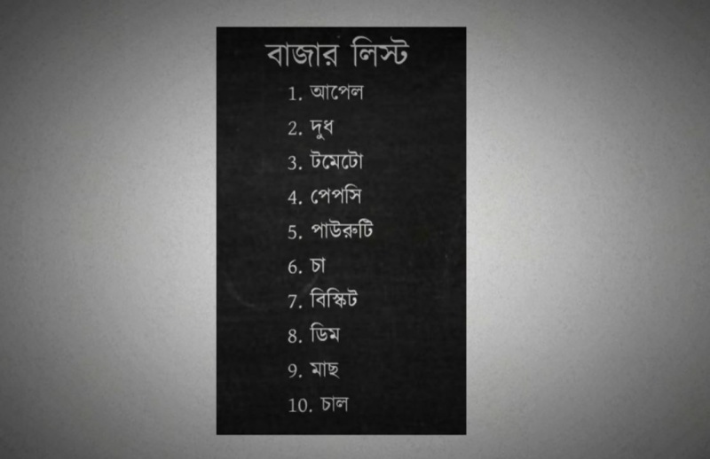 এবার বাজার লিস্ট টা দেখুন। বাজার লিস্ট এর আইটেম গুলোকে তার পাশের সংখ্যার মত দেখতে বস্তুর সাথে মনে মনে গুল্প বা ছবি তৈরি করে যুক্ত করতে হবে। আপনার গল্প বা ছবি যত বেশি অদ্ভুত আর অবাস্তব হবে তত ভাল আপনার মনে থাকবে।