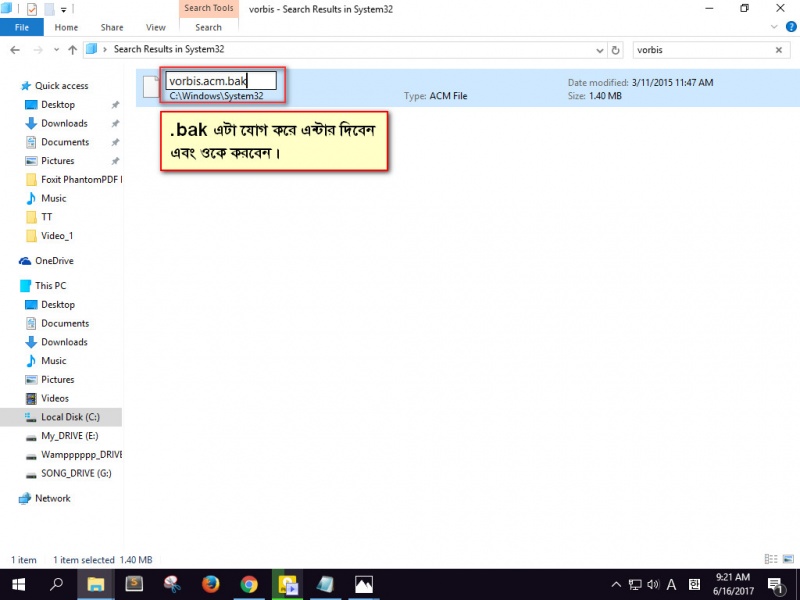 এই ফাইলটির শেষে .bak এটা যোগ করে রিনেইম করে এন্টার দিন এবং ওকে করুন।
