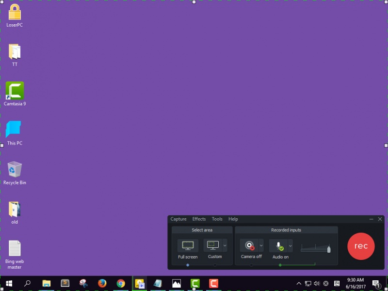 ব্যস কাজ শেষ। এবার Camtasia Studio 9 ওপেন করে রেকর্ড বাটনে ক্লিক করুন দেখবেন নিচের মত রেকর্ড টুলবার এসেছে।
