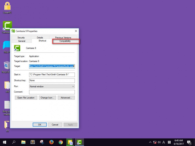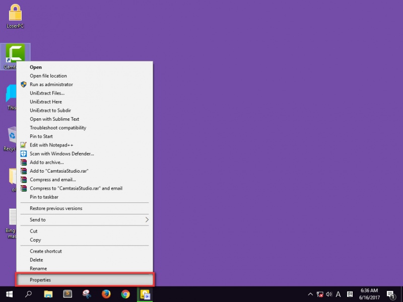 প্রথমে Camtasia icon এ রাইট বাটনে ক্লিক করে Properties এ যাবেন।