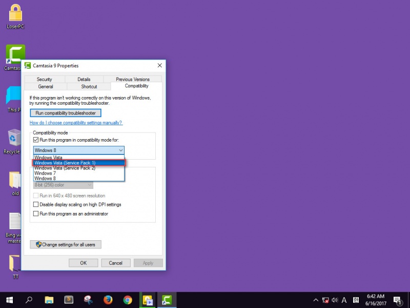এখান থেকে Windows vista বা Windows vista Service pack 1 টি সিলেক্ট করে এপ্লাই দিয়ে ওকে দিন।