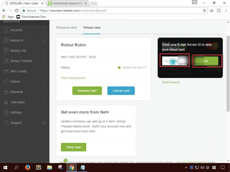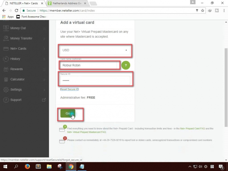 নিচের মত চিত্র দেখতে পারবেন। এখানে কারেন্সি থেকে ইউএসডি, নেইম_অন_কার্ড এ আপনার নাম দিবেন এবং সিকিউর_আইডি মানে যেটা নোটপেডে রাখার জন্য বলেছিলাম সেটা পেস্ট করে দিয়ে GO বাটনে ক্লিক করুন।