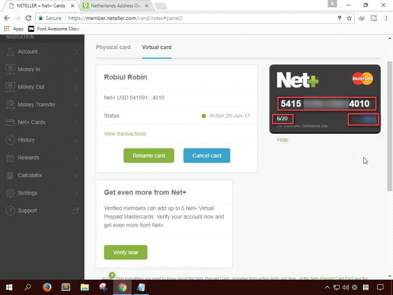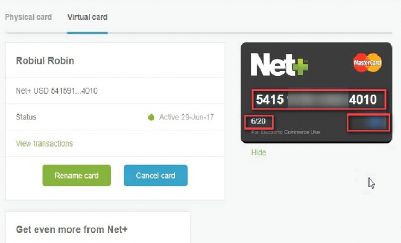 এখন ডলার লোড করার পর আবার নেট+কার্ড এ ক্লিক করলাম।