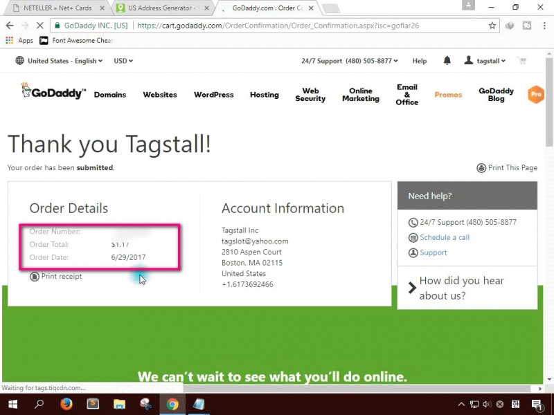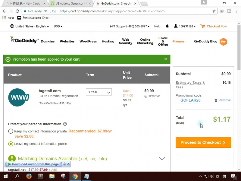 এই কার্ড এর নাম্বার গুলো দিয়ে আপনি অনলাইনে যেকোন পারচেস করতে পারবেন। আমি Goddady থেকে একটা ডোমেইন কিনব এখন কিভাবে ডোমেইন কিনতে হয় সম্পূর্ণ লিখা অনেক কষ্টকর আপনার চাইলে ইউটিউবে একটা সার্চ মারতে পারেন How to buy domain on Goddady এখানে দেখে নিতে পারেন। আমি আমার ডোমেইনটা কিনার কিছু ক্রিনশট দিয়ে Billing & Information পেইজটি দেখাচ্ছি।
