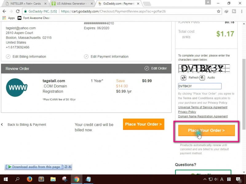 এরকম একটা পেইজ আসবে এখানে ক্যাপচায় থাকা কোডটি লিখে Place Your Order এখানে ক্লিক করুন।