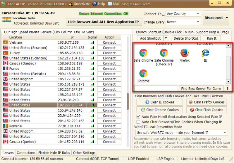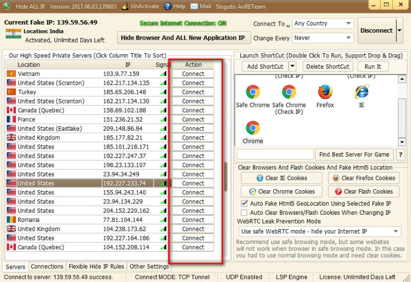 HideAllIP_Loader নামের ফাইল কে Run ad adminstation করে ওপেন করুন তাহলে নিচের মত চিত্র আসবে। এখান থেকে যে কোন দেশ সিলেক্ট করে ব্রাউস করুন।