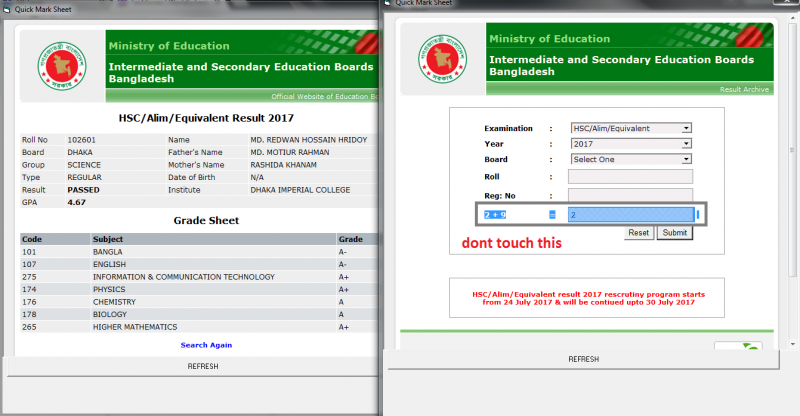 মূলত রেজাল্ট শিট পাবলিশ হবে পাঁচটার পরে কিন্তু এই সফটওয়্যার টি আপনাকে এক্ষনি দিয়ে দিবে আপনার কাঙ্খিত রেজাল্ট শিট সাধারণত ফেইসবুক এ কিছু গ্রুপ এ ধরণের সাহায্য করে থাকে কিন্তু তারা তাদের ওই সফটওয়্যার টি উন্মুক্ত করে না আর রেজাল্ট এর দিন হাজার হাজার টিউমেন্ট বা রেসাল্ট জানতে চাওয়া আগ্রহীদের মধ্যে অনেকেই পায় না তাই সকলের সুবিধার্থে নিজেই তৈরী করলাম এবং উন্মুক্ত করলাম টেকটিউনস এর মাধ্যমে।