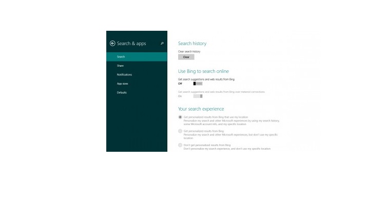 এই উইন্ডোজ ভার্শনটিতে রয়েছে স্মার্ট সার্চ সিস্টেম। আপনি আপনার ফাইল কে খোঁজার জন্য এই সার্চ অপশন ব্যবহার করতে পারেন। আপনি এখানে কোনো ফাইল সার্চ করলে তা আপনার পুরো কম্পিউটার, স্কাইড্রাইব এবং ওয়েবসাইটে সার্চ করবে। আর আপনি চাইলে এই সার্চের ধরণ পরিবর্তনও করতে পারবেন। প্রথমে সেটিং ওপেন করুন। এরপর "change pc settings>>search and apps>> search " এখানে গিয়ে চাইলে আপনি বিং ইন্টিগ্রেশন ডিজেবল করে দিতে পারেন।