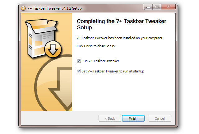 ইন্সটল কমপ্লিট হবার পর Set 7+ Taskbar Tweaker to run at starup বক্সে টিক চিহ্ন দিয়ে রাখুন। না হলে প্রতিবার পিসি চালু করার সময় আপনাকে নিজে থেকে সফটওয়্যারটি ওপেন করার ঝামেলা পোহাতে হবে।