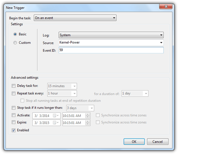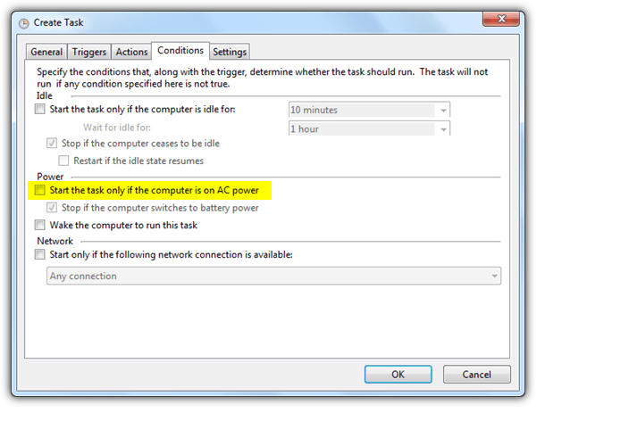 away mode মোড অন করার জন্য শুধু এই away mode enabled.reg এটা রান করান। ফাইলটি রেজিস্ট্রিতে ইম্পোর্ট হয়ে গেলে কম্পিউটার স্লিপ মোডে চলে গেলেও away mode এ থাকবে। মানে ঘুমিয়েও সজাগ। এরপর টাস্ক ম্যানেজার অন করুন। এর জন্য WIN+R একসাথে চাপুন। এরপর টাইপ করুন taskschd.msc এরপর হিন্টগুলো ফলো করে create task এ ক্লিক করুন। টাস্ক এর একটা নাম দিন। যেমন, Run the program low battery). এরপর Triggers ট্যাব এ যান এবং new বাটনে ক্লিক করুন। এরপর নিছের ইনফরমেশনগুলো দিয়ে ইন্টার দিন।