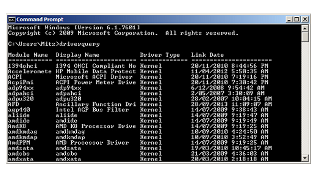 ৩৮) আপনার কম্পিউটারে ইন্সটলকৃত ড্রাইভারগুলোকে দেখতে চাইলে কমান্ড প্রোমোটে লিখুন driverquery এবং এন্টার দিন। এটা আপনাকে আপনার পিসিতে ইন্সটলকৃত ড্রাইভারগুলোর লিস্ট দেখাবে।