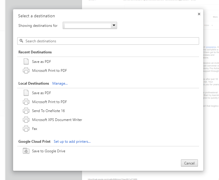 আশা করি বুঝতে পেরেছেন কিভাবে একটি ইমেইল সেভ করা যায়। এই পদ্ধতিতে আপনি যেকোনো ওয়েবসাইটকে সেভ করে রাখতে পারবেন। তবে যদি “Destination” অপশনটিতে “Microsoft Print to PDF” খুঁজে না পান তবে নিচের পদ্ধতি অনুসরণ করে তা আনতে পারবেন।