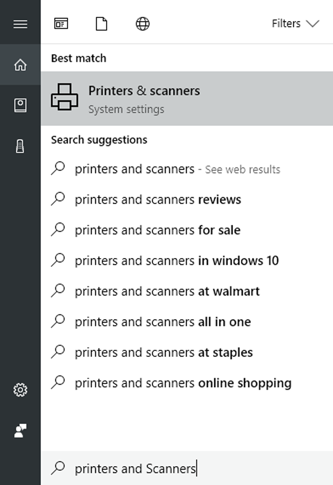 এর জন্য প্রথমেই উইন্ডোজ সার্চ বার থেকে “Printers and Scanners” সার্চ দিয়ে খুঁজে বের করুন এবং ওপেন করুন।