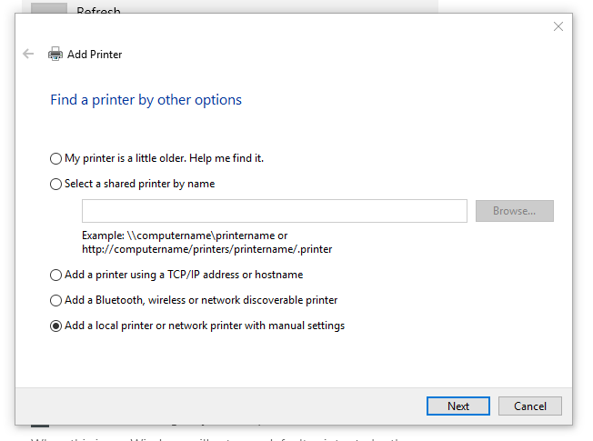 তারপরে সেখান থেকে “The Printer that I want isn’t listed” নামের অপশনটিতে ক্লিক করুন।