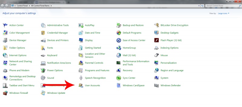 ১) সরাসরি কন্ট্রোল প্যানেলে চলে যান এবং User Accounts অপশনে ক্লিক করুন।