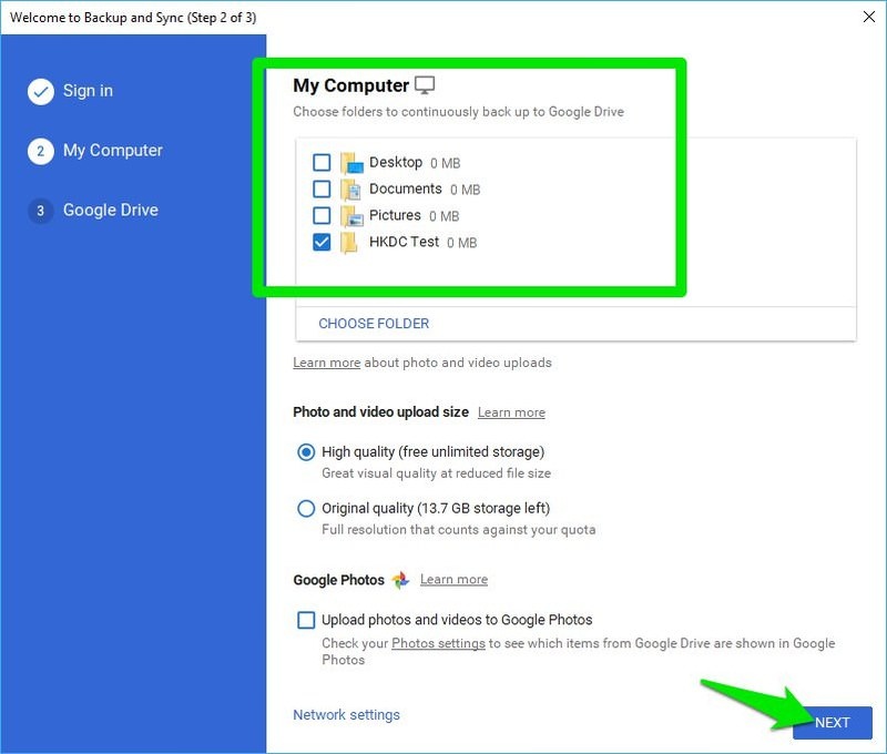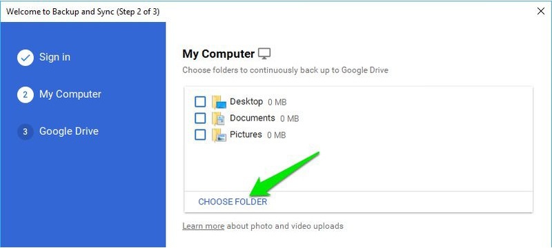 ২) এবার CHOOSE FOLDER অপশনে ক্লিক করে আপনার পিসি থেকে যে ফোল্ডারটি সিঙ্ক করতে চান সেটি নির্বাচন করতে পারবেন।