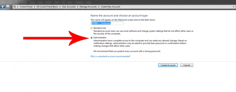 ৫) এবার সদ্য তৈরিকৃত একাউন্টের নামের নিচে দেখবেন একটি অপশন রয়েছে Change your account type নামে। এখানে ক্লিক করুন। আর এখানে এসে Administrator বক্সে টিক দিয়ে Change Account Type বাটনে ক্লিক করে বেরিয়ে আসুন।