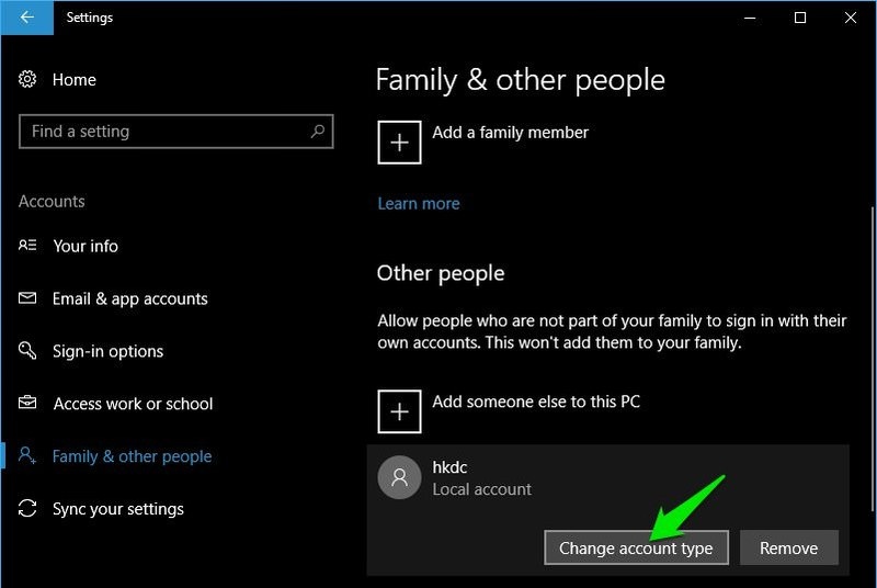 ৬) এবার আমাদেরকে এই সদ্য তৈরি করা একাউন্টটিকে Administrator আকারে বানিয়ে নিতে হবে, এর জন্য Change account type অপশনে ক্লিক করতে হবে।